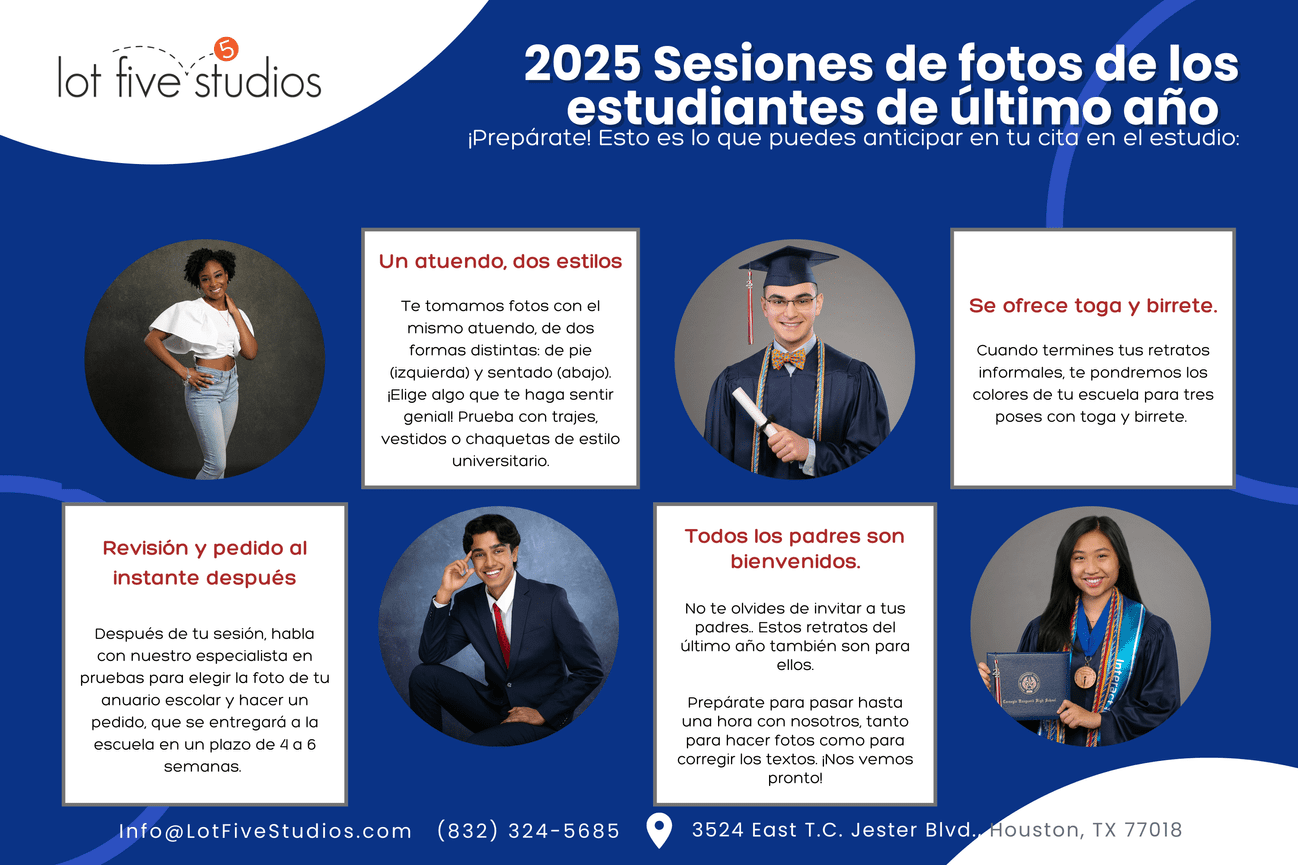 ¡Tenemos un nuevo estudio en el área de Oak Forest y estamos listos para fotografiarte! Lea a continuación para obtener detalles importantes sobre su experiencia en retratos para seniors.